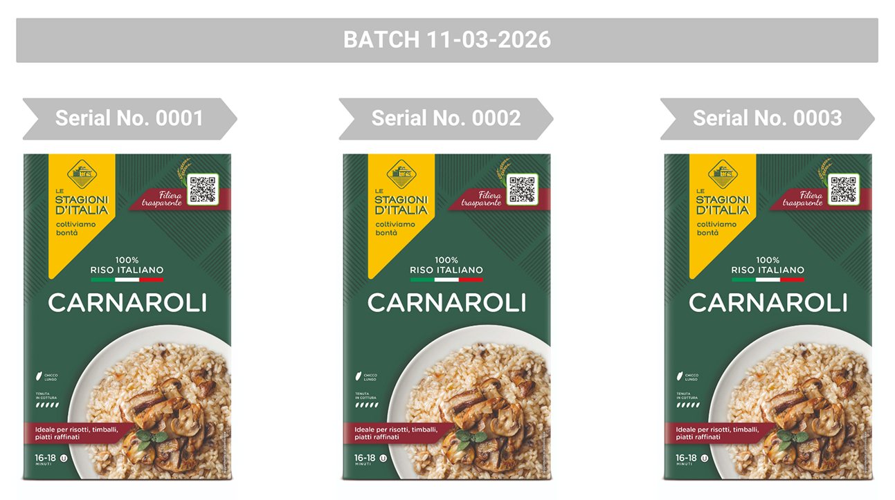 This machine represents the core of digital traceability for food products. Its role is to ensure that each individual package is uniquely and verifiably identified, without interrupting production continuity.