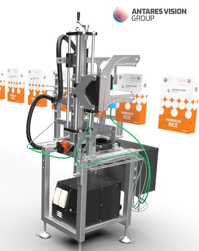 The system prints a unique GS1 Digital Link QR Code, generated by Antares Vision software.